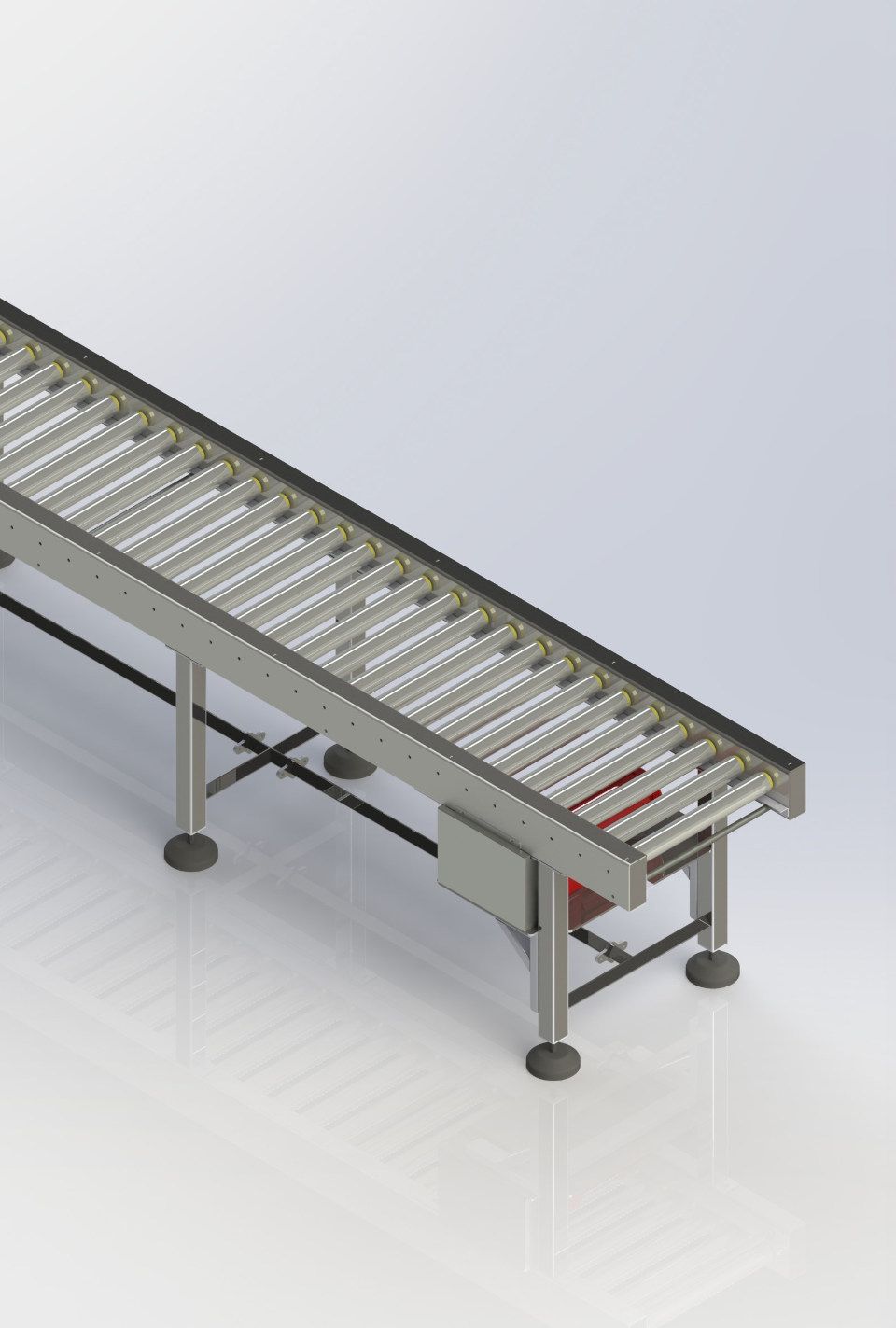 A powered roller conveyor uses motorized rollers to move goods along a path. Enables controlled movement, speed adjustment, and accumulation. Common in warehouses, manufacturing, and distribution.